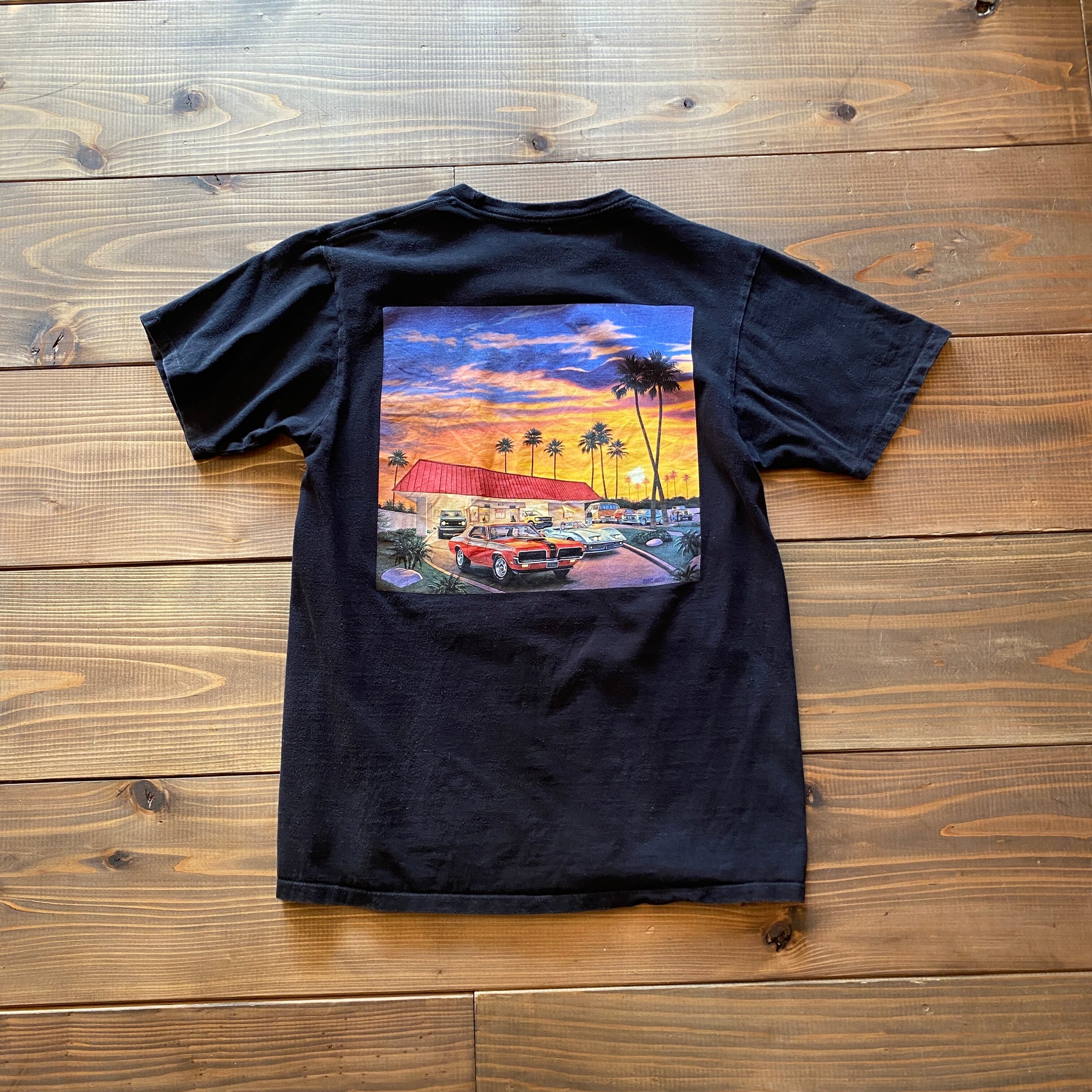 バックは夕焼けのカリフォルニア漂うプリント。
