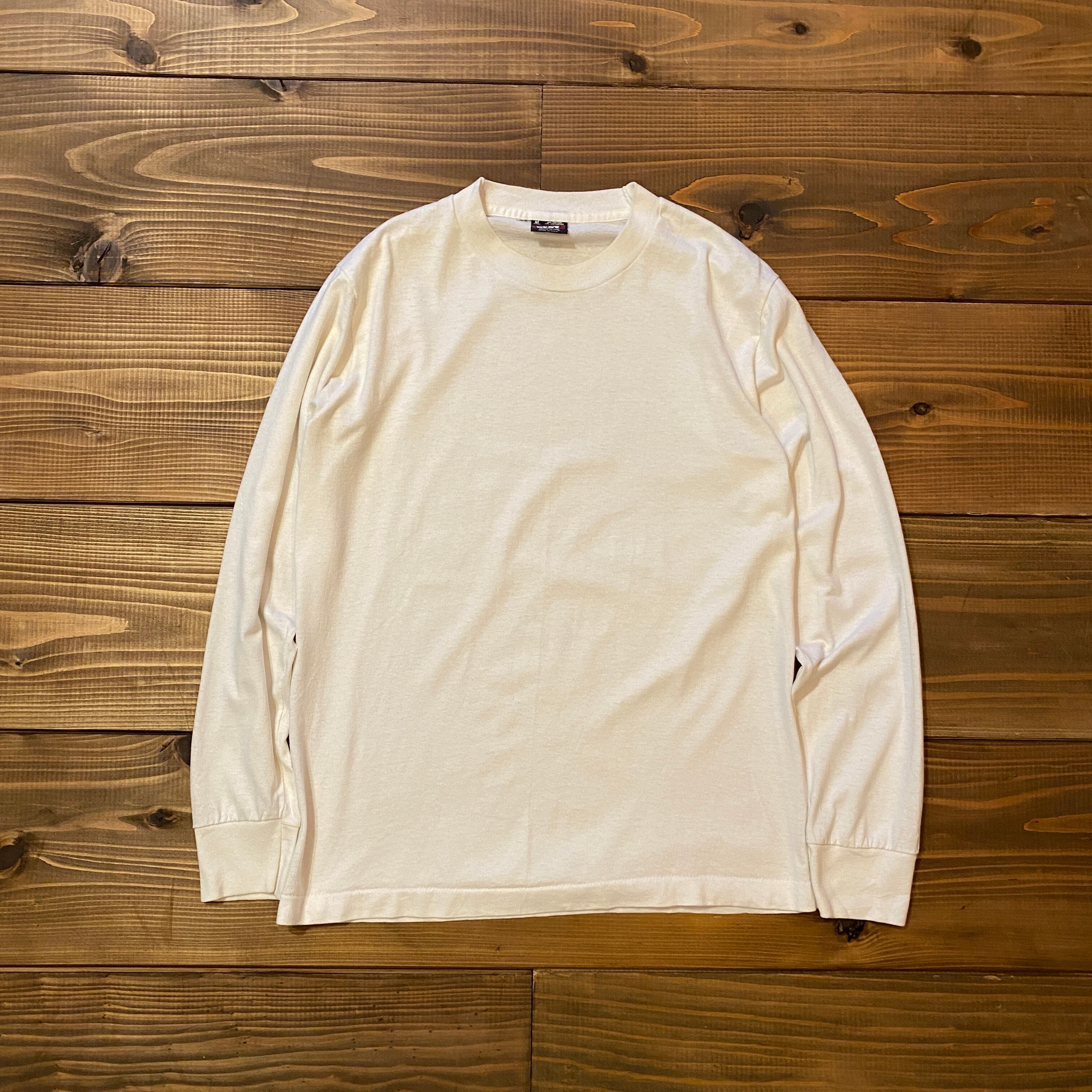 古き良きアメリカ製のソリッド無地プレーンL/S Teeホワイト。