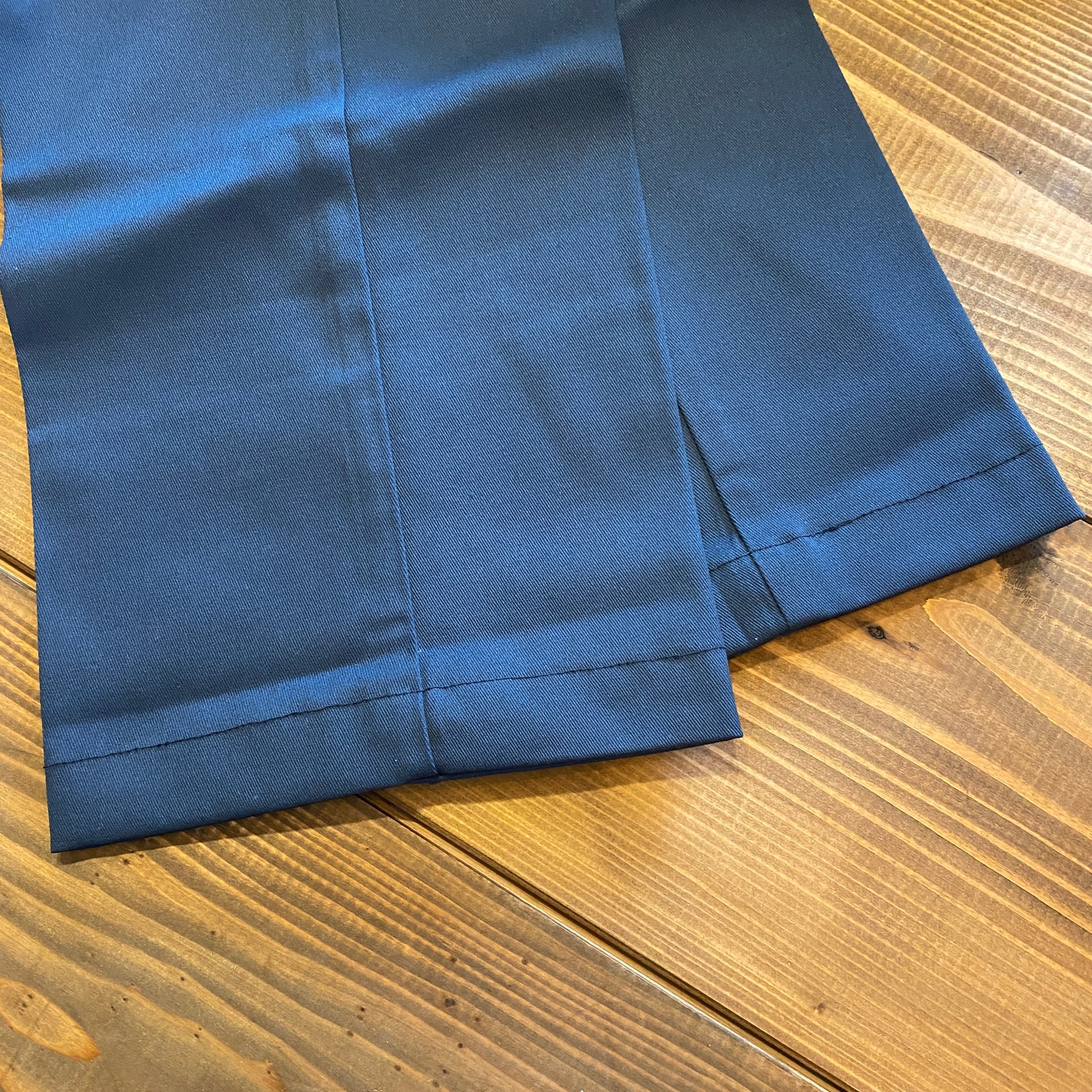 ダークネイビーで、レングスは裾幅を同じcmで合わせ、30インチへ裾上げ済み。