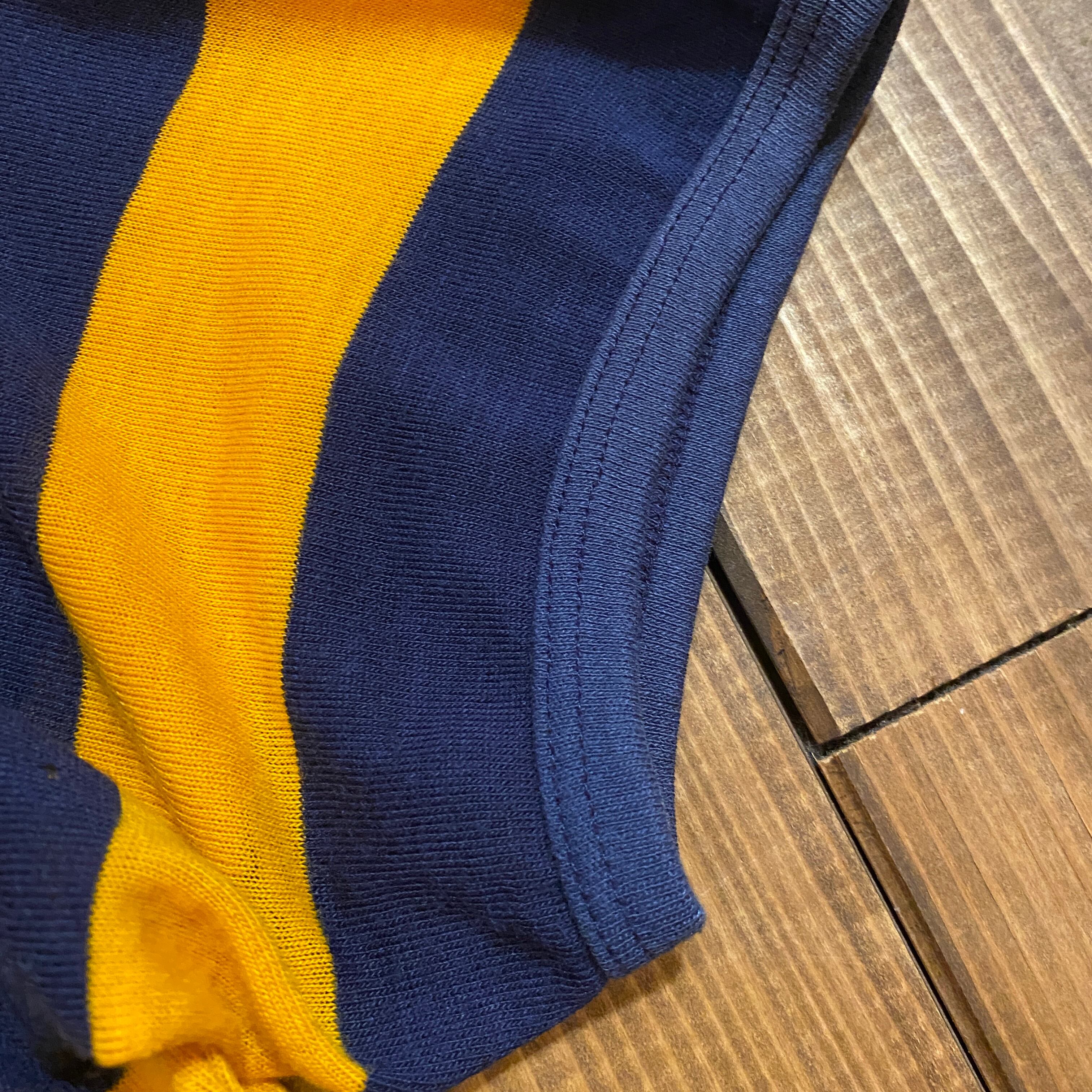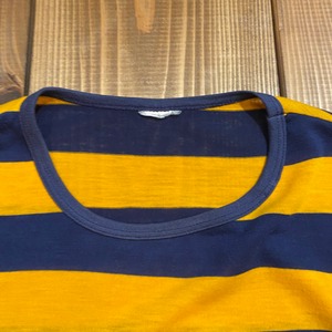 細リブのネイビーイエローのボーダーT。